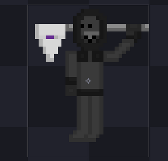 There is also a sprite where Mistery Man is holding a stone, indicating that I planned other powers besides the sword. From the sprites it seems he would have had these subweapons/powers: Punch (maybe), Sword (which is in the game), Nask's Scythe, Magic Shield (maybe), and if I remember correctly a dash that would make M.M spin into the air when hitting a wall.